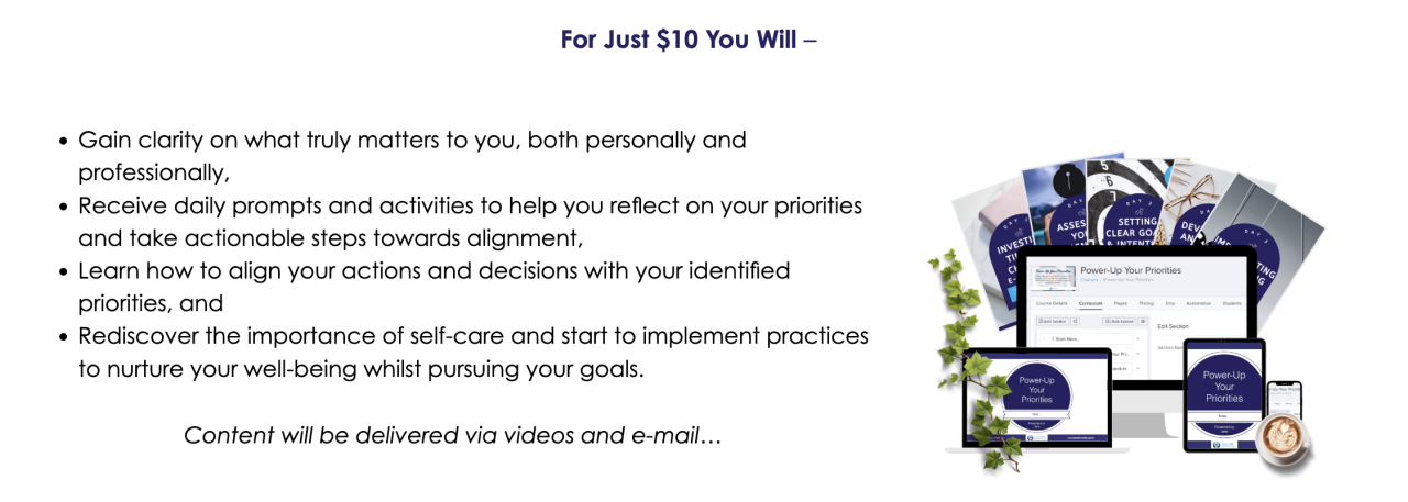 Individual Price for the 5-day Power-Up Your Priorities adventure (pre-recorded and 90-day access).